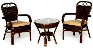 Комплект: стол кофейный со стеклом + 2 кресла + подушки