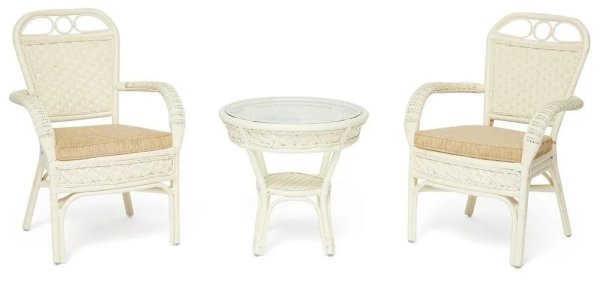 Изумительный террасный комплект мебели Secret De Maison из коллекции ANDREA, состоящий из столика и двух кресел, будет прекрасно смотреться в загородном доме, на дачной веранде, отлично подойдёт для отдыха на приусадебном участке. Уникальные плетеные узоры из натурального ротанга, выполненные вручную с использованием нескольких видов традиционного индонезийского плетения, добавят ноты изысканности и индивидуальности в ваш интерьер. Небольшой столик со столешницей из закаленного стекла, дополненный миниатюрной нижней полочкой, практичен и элегантен. Стекло обладает повышенной прочностью, долговечностью, способно многие годы не утрачивать своей первоначальной привлекательности. Два эргономичных кресла с мягкими подушками позволят удобно расположиться для комфортного отдыха. Тканевая обивка подушек проста в уходе, прослужит вам долгие годы, сохраняя свой первоначальный вид. Эта прочная и практичная мебель покрыта прозрачным матовым лаком, устойчивым к УФ-излучению, способна выдержать большие нагрузки, устойчива к повышенной влажности и долгие годы сохранит свой презентабельный вид. Комплект идеально сочетается с мебелью из коллекции ANDREA, поставляется в собранном виде.