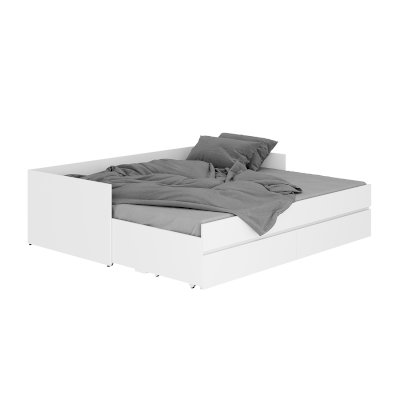 Кровать-трансформер из коллекции "Симпл" - это практичная и комфортная модель для современной спальни. Она удобна в использовании в небольших помещениях - при необходимости ее можно раздвинуть и получить дополнительное спальное место. Кровать оснащена выкатными ящиками, в которых легко размещается постельное белье, текстиль и другие вещи, которым не нашлось места в шкафу. Основание для кровати в комплекте - ламели для раздвижных кроватей. К данной модели кровати можно отдельно приобрести матрас-трансформер.