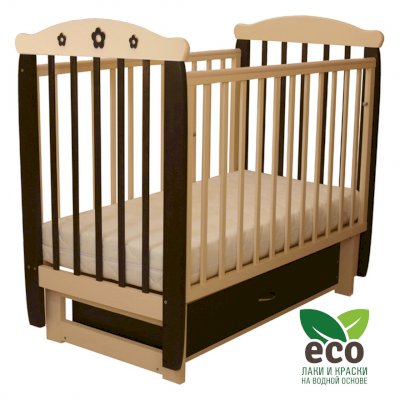 Кроватка "Соня 04" имеет механизм качания поперечный маятник. Механизм качания фиксируется. Возможен вариант с ящиком.