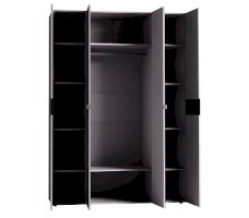 Норвуд 555 - большой четырехдверный вместительный гардероб коллекции Норвуд не оставит равнодушными хозяек, ценящих рациональное использование пространства. Система хранения вещей распашного шкафа включает в себя: отделение с 2 полками и стационарной штангой длиной 777 мм для одежды, ряд регулируемых полок для белья в боковых секциях для белья. Два белых глухих фасада с ручками из массива дерева декорированы вставкой в цвете Орех Шоколадный. Зеркальные фасады с аккуратными металлическими ручками для комфортного открывания. Регулируемые опоры компенсируют неровности пола.