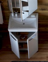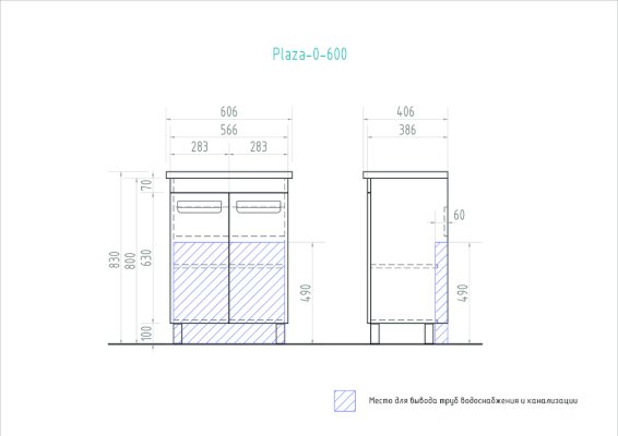2 дверцы; 1 полка ЛДСП; ручка врезная металлическая хромированная, опоры квадратные регулируемые.