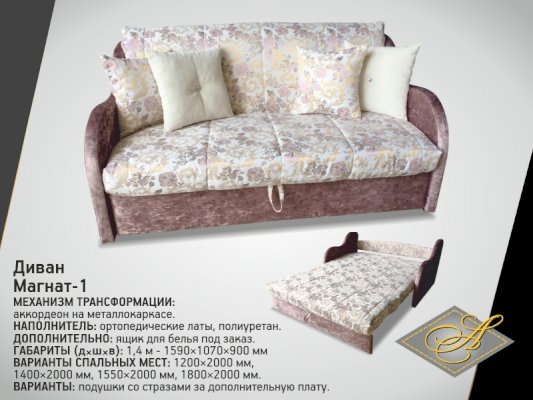 Диван «Магнат-1» 1,4 асм - за 48 477 руб. в Дмитрове. Купите на сайте dmitrov.onlinemarketmebeli.ru или по телефону 8(800)505-30-63 уже сегодня! Уточнить наличие, комплектацию, актуальную цену можно бесплатно у менеджера ежедневно. Закажите Диван «Магнат-1» 1,4 асм до конца акции! Доступна покупка в кредит, рассрочку. Доставим со склада или на заказ.