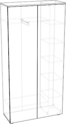 Шкаф 2-х дверный отличается простотой и лаконичностью оформления, внутри секция с полками и выдвижная штанга под одежду.
