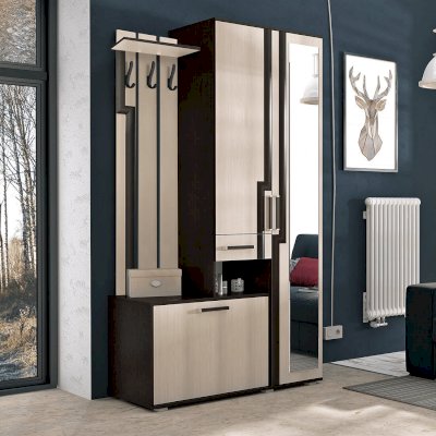 Прихожая Лира – это не только практичное, но и красивое решение вопроса хранения вещей во входной зоне квартиры или дома. Модель выполнена из качественного ЛДСП двух цветов – венге и лоредо. Такое сочетание позволит прихожей стать частью практически любого интерьера.