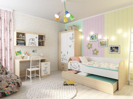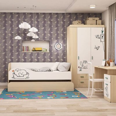 Цена, модульная система - можно выбрать всю мебель в комнату в одном стиле/цвете за вменяемую стоимость. Отсутствие запаха и стружки при распаковке. Хорошее качество, заводская разметка - все дырки на месте, комплектующих хватает. Доводчик на дверце тумбы.