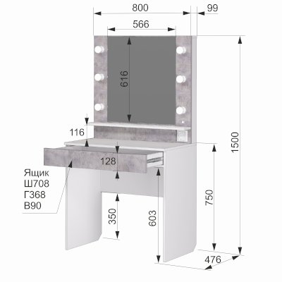 | Назначение столика | для взрослых (женщин, мужчин) / макияжный, косметический (для ухода) |