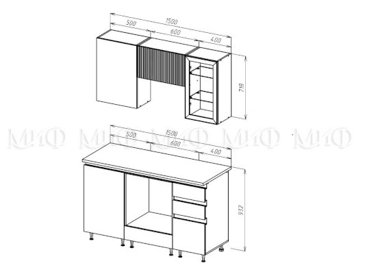| Высота нижних шкафов, мм | 932 |