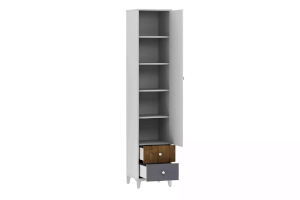 Шкаф-пенал «Морти» – комбинированный одностворчатый шкаф с полками для белья за распашной дверцей и двумя небольшими выдвижными ящиками в основании. Вы можете легко вписать этот предмет интерьера в любое пространство любой площади.