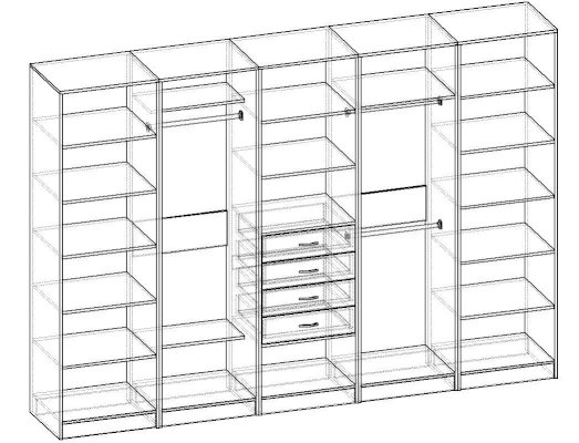 Вы можете выбрать любой цвет корпуса из представленных ниже вариантов цветов ЛДСП.Также вы можете собрать cами свою гардеробную Alex