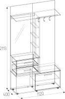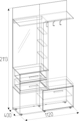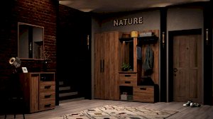 Комбинированный модуль Nature 70 Шкаф МЦН можно расположить в прихожей в составе шкафной группы или автономно. В небольшом по габаритам модуле сочетается всё необходимое: открытая вешалка, тумба для обуви, полка для головных уборов, выдвижные ящики, зеркало с подсветкой. Встроенная светодиодная подсветка включается при помощи аккуратного кнопочного выключателя. Выдвижные ящики оснащены шариковыми направляющими. Откидной фасад обувной тумбы дополнительно фиксируется при закрывании магнитной защелкой. В комплектацию входит мягкая подушка из черной экокожи с золотой строчкой. Собрать шкаф МЦН можно как на правую, так и на левую сторону.