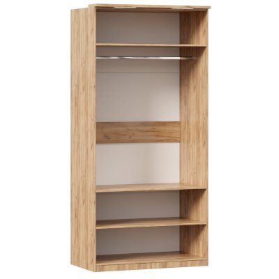 • За 2 распашными фасадами 3 полки и штанга для одежды. Высота ниши со штангой 1250 мм