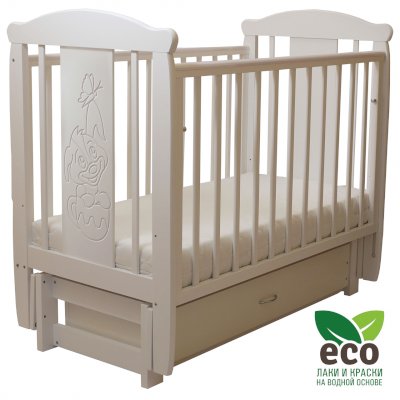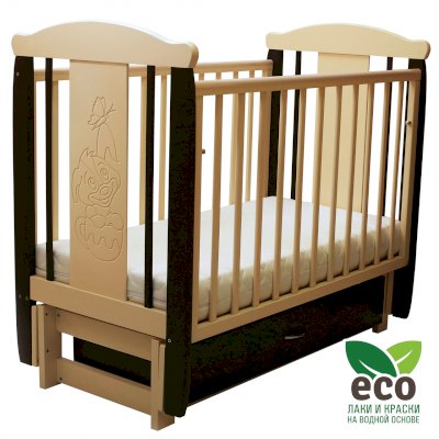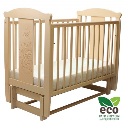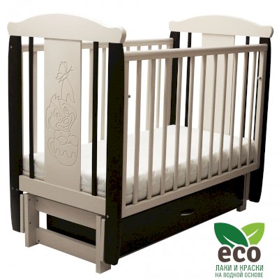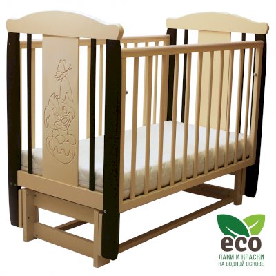 варианты цветовых решений Кроватка "Соня 05" имеет механизм качания продольный маятник. Механизм качания фиксируется. Возможен вариант кровати с ящиком.