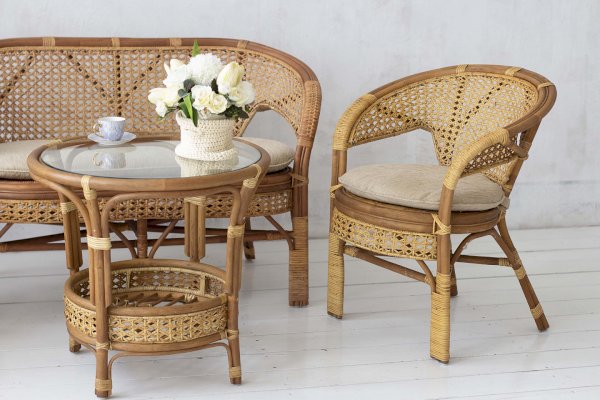 Комплект плетеной мебели из ротанга.