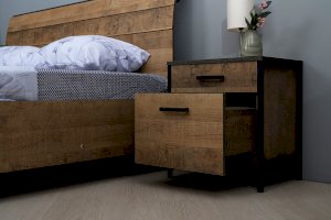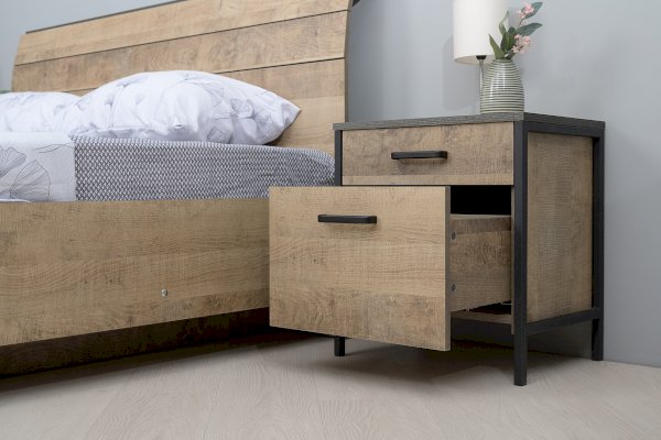 Металлические опоры делают эту мебель надёжной, аутентичной и функциональной. Лицевая фурнитура с тем же покрытием придаёт мебели индустриальную эстетику.
