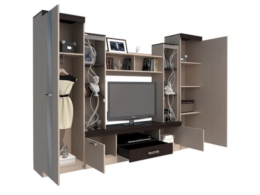Функционал хранение посуды / хранение одежды / зона для ТВ