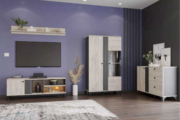 Тумба Отис предназначена для тех, кто ищет необычный дизайн в модной цветовой гамме дуба с контрастным антрацитом. Реечные фасады смотрятся не только лаконично и эффектно, но и по-особенному изящно. Тумба оснащена распашной дверью с двумя отделениями для хранения и тремя ящиками, которые выдвигаются плавно и бесшумно благодаря шариковым направляющим, а высокие опоры обеспечивают легкий и быстрый доступ во время уборки.