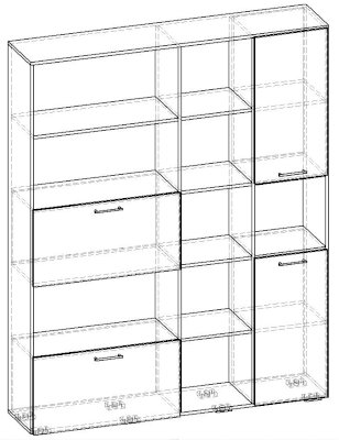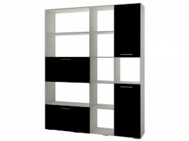 Применение задней стенки из ЛДСП (в ячейках с фасадами) позволяет использовать данный стеллаж для зонирования пространства (чтобы предотвратить опрокидывание, необходимо обеспечить крепление стеллажа к стене).