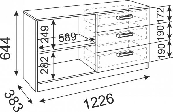 Предусмотрено хранение дисков / техники (приставка для телевизора)