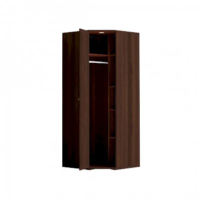 Используйте углы в комнате рационально! Угловой шкаф оснащен стационарной штангой длиной 81 см, полочками для белья и автоматической подсветкой, которая включается, если шкаф открыт. Фасад углового шкафа изготавливается только в исполнении «левый» (определяется по расположению петель). По своим габаритам угловой шкаф подходит для компоновок глубиной 590 мм.