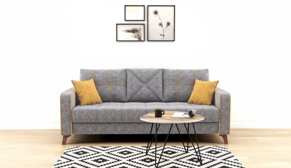 Элегантный и функциональный диван Марсель – яркий стилистический акцент как для классического, так и современного интерьера. Декоративные защипы сиденья придают ощущение легкой трехмерности модели. Боковины в мягкой рамке с контрастным кантом по периметру, утяжками и пуговицами, выгодно подчёркивают силуэт и вносят яркую ноту в нейтральную обивку дивана. Большие приспинные подушки помогают расслабиться, а две маленькие подушки контрастного цвета придают дополнительный комфорт. С помощью механизма «Тик-так» диван быстро трансформируется в кровать с вместительным бельевым ящиком из фанеры.