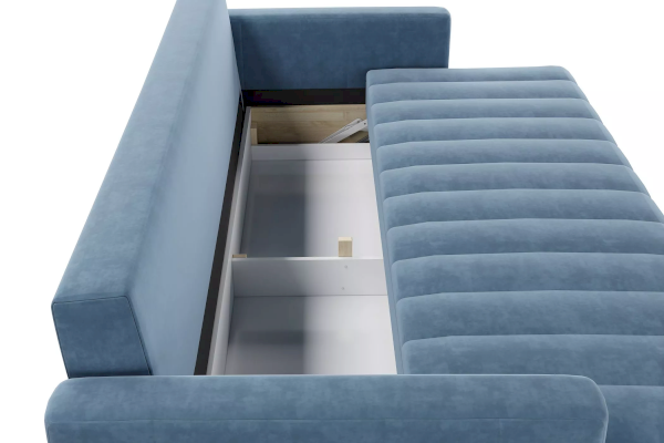 Диван располагает комфортным посадочным местом, а боковина оснащена современным решением для оперативной зарядки гаджетов. Вертикальная стёжка на приспинных подушках, сиденье и подлокотниках является изюминкой дивана.
