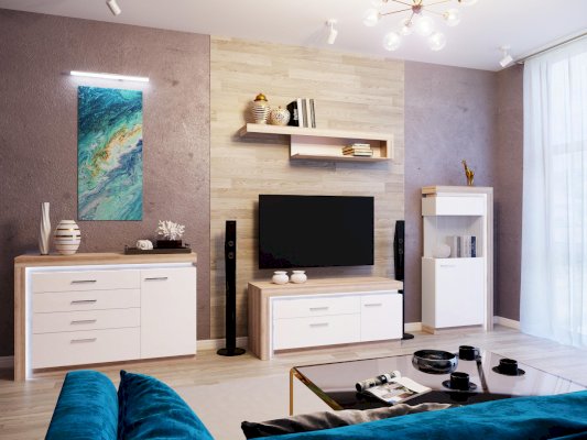 Тумба ТВ №2 Дуб сакраменто/Белый снег глянец