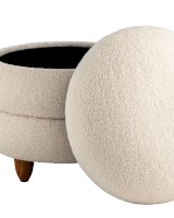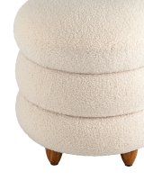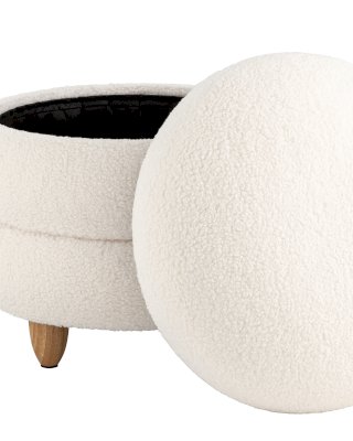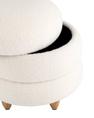 Круглый пуфик Винни в скандинавском стиле. Обивка выполнена из ткани тедди - очень мягкий и приятный на ощупь материал. Прочный каркас из фанеры выдерживает нагрузку до 150 кг. Вместительный ящик для хранения мелочей внутри обит плотной тканью. Полностью съемная крышка придаёт пуфу объемность, идеально дополняя общий дизайн. Ножки из светлого массива дерева гармонично сочетаются с белой обивкой. Пуф Винни отличный вариант для спальни, детской и прихожей.