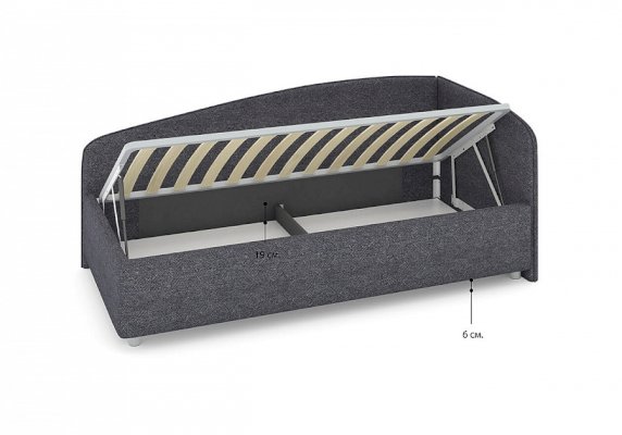 Односпальная кровать для ребенка или подростка. Модель изготовлена из ДСП. В комплект кровати входит кроватное основание без опор. Каркас основания выполнен из металла, ламели - из берёзы.