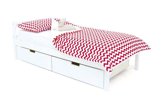 Для удобства хранения игрушек или постельных принадлежностей, вы можете приобрести еще вместительные ящики, которые устанавливаются под основание кровати. Многообразие цветов фасадов ящика позволяет скомплектовать разные варианты.