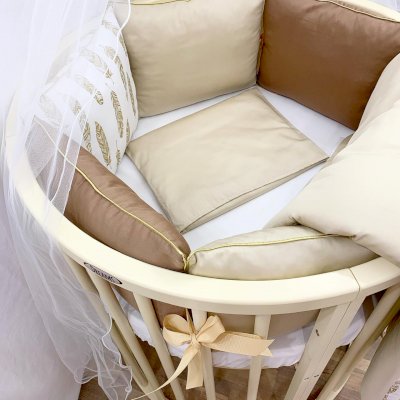 • Комплект простыней на 2 матраса (круглый и овальный: для 2-х трансформаций детской кроватки Dreams).