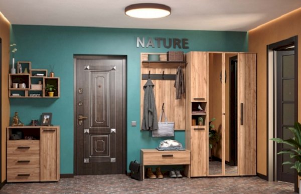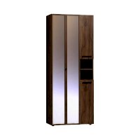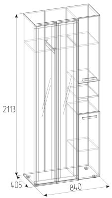 Nature 87 Шкаф для одежды и белья создаст все необходимые условия для хранения в прихожей верхней одежды и аксессуаров. В этом шкафу есть все необходимое для размещения верхней одежды: выдвижная штанга, верхняя полка, ряд регулируемых полок. Большая секция оснащена выдвижной штангой для развешивания пальто и курток на плечиках. Выдвижная штанга выдерживает вес до 10 кг. Один из зеркальных фасадов Контур открывается за ручку-петлю из черной экокожи, второй фасад - за раму. По желанию к модулю можно докупить Nature 94 Дополнительный модуль для Nature 87, который крепится под полку открытой ниши.
