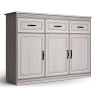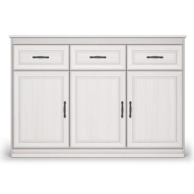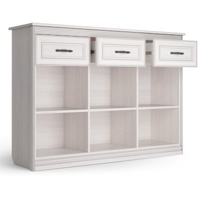 Большой комод из классической коллекции Неаполь способен решить сразу несколько задач: здесь можно разместить телевизор, при этом модуль выполнит функцию ТВ- тумбы, а благодаря своей вместительной и функциональной конструкции он позволяет хранить аксессуары, украшения и одежду. Три отделения с дверками для вашего удобства разделены полочками. В верхней части расположены три ящика, где можно расположить множество мелочей.