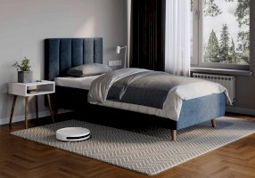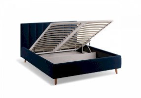 Кровать Alma подойдет для современных интерьеров спален, а благодаря деревянным ножкам впишется в стиль ретро, скандинавский или минимализм. В комплект входит металлическое основание с деревянными ламелиями, а при желании кровать Alma может быть укомплектована подъемным механизмом с бельевым ящиком.