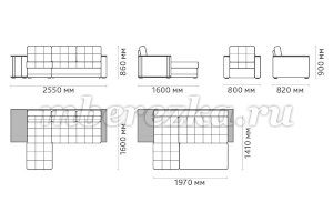 Размер дивана : 2550*1600*860 мм