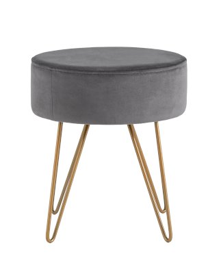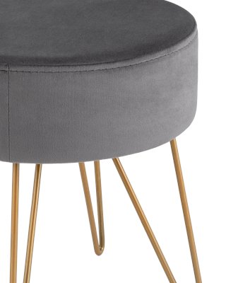 Компактный мягкий пуф на металлических ножках. Мягкая обивка выполнена из износостойкого велюра, тактильно приятный и долговечный материал. Изогнутые металлические ножки высотой 27 см дополняют дизайн и придают пуфику изящный вид. Подпятники в основании ножек делают пуф более устойчивым и предотвращают скольжение.