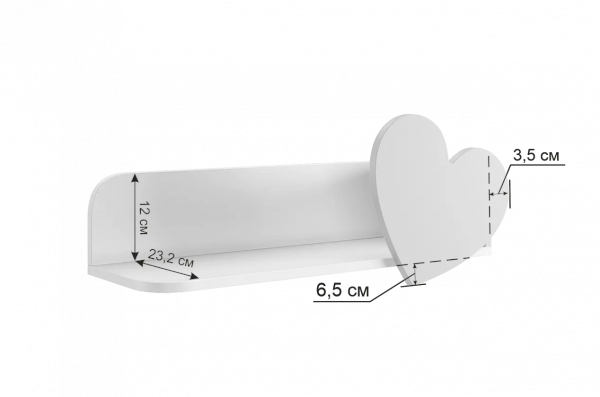 Выбирая навесную полку "Сердечко", вы получаете совершенство и функциональность в одном. Наслаждайтесь расставлением предметов и создайте особенный уголок, который станет истинным притягательным центром в комнате вашего ребенка. Будьте уверены, что продукт выполнен из самых качественных материалов и прослужит вам долгие годы.
