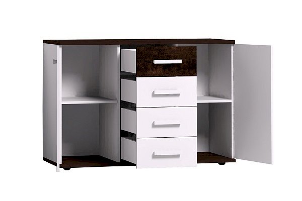 Стильная Норвуд 5 Тумба МЦН отвечает требованиям скандинавского стиля. Яркие акценты тумбы - контрастные горизонтальные детали толщиной 22 мм и фасад верхнего ящика в декоре Орех Шоколадный. Четыре выдвижных ящика на шариковых направляющих, две распашные дверцы по бокам легко и удобно открываются за светлые ручки из массива. Регулируемые опоры компенсируют неровности пола.