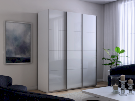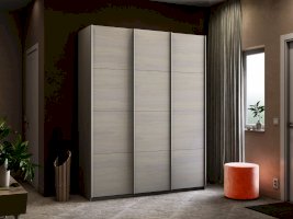 Серия «Прайм» отличается доступностью и функциональностью Навесные двери и лаконичная отделка фасадов создают прогрессивный дизайн. Подойдет тем, кто любит компактную и изящную мебель. Алюминиевые ручки и верхний ходовой профиль обеспечивают легкость и прочность конструкции. Многолетняя безупречная работа благодаря высококачественной немецкой фурнитуре Hettich. Прочная ПВХ-кромка толщиной до 1 мм защищает края от сколов и повреждений. Плавный ход дверей обеспечивает надежная система Hettich Top Line M. Дополнительно можно установить доводчики. Снаружи нет заглушек и винтов благодаря стяжечной системе крепления полок на флипперах, а корпус усилен эксцентриковыми стяжками. Навесные двери скрывают раздвижной механизм от глаз. Они надежно удерживаются в направляющих и не соскакивают. Каждая дверь поделена на 4 секции Секции расставляются в произвольном порядке, создавая новый дизайн фасада.