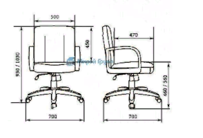 Кресло с низкой спинкой, с подлокотниками прямоугольной замкнутой формы с мягкими накладками обитыми в цвет кресла.