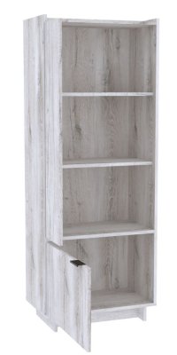 Открытый стеллаж с распашным фасадом и отделением с полками ФЛЕКС 25 в светлом цвете Дуб Шавиниган выполнен из ЛДСП класса эмиссии Е1 толщиной 16 мм. Такая открытая этажерка дополнит систему хранения в любой комнате: в гостиной, спальне, молодежной и прихожей. Бортики вверху по краям в одном стиле с коллекцией Флекс. Предусмотрена правосторонняя и левосторонняя сборка модуля.