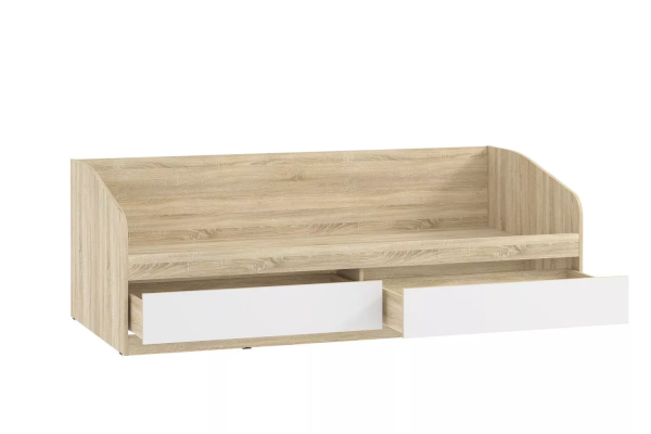 Одноместная кровать Фанк с лаконичным дизайном идеально подходит для оформления уютного спального уголка в детской. Вместительные бельевые ящики удобны для хранения постельных принадлежностей. Боковая спинка предотвращает истирание настенного покрытия. Кровать полностью безопасна для ребенка: у модели нет острых углов и накладных ручек на фасадах ящиков. Дополнительно рекомендуем приобрести ограждение 014.43-01, которое защитит ребенка во время сна.