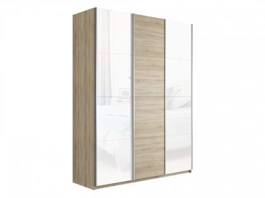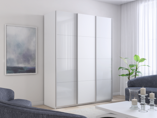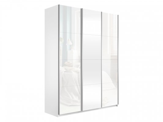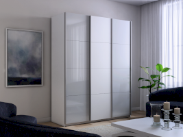 Шкаф-купе 3-х дверный Прайм Белое стекло/ДСП/Белое стекло 1800х2300х570 мм