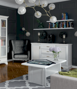 Кентаки - мебель классического стиля, отличающаяся природными цветами, отделкой фактурой, всегда актуально и востребована, она настолько универсальна, что без проблем впишется в любой современный дизайн. Стиль набора модульной мебели подчеркивается лакированной патинированной планкой в фасадах, карнизами - завершающим акцентом в зеркалах и высоких элементах набора, витиеватыми ручками.