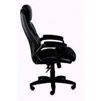 Кресло для руководителя Статус Ultra с обивкой из экокожи. Подлокотники и крестовина выполнены из пластика, на подлокотниках мягкие накладки из искусственной кожи. Все элементы кресла выполнены в черном цвете. Кресло оборудовано механизмом качания Top Gun с возможностью фиксации в рабочем