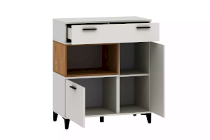 Удобная и функциональная тумба Bergen в современном скандинавском стиле является незаменимым элементом любой спальни и гостиной. Ярко выраженные элементы в виде контрастных вставок цвета дерева и черных ручек подойдут для светлых и темных интерьеров.