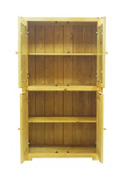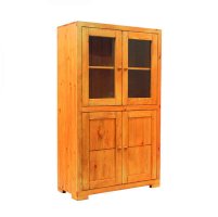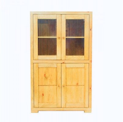 Функциональность витрине обеспечена с помощью закрытого отделения с глухими распашными дверьми. Туда вы можете сложить книги, документы и белье. Прекрасная отделка и надежная фурнитура обеспечат этой витрине из массива сосны долговечность при самой интенсивной эксплуатации.