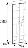 Двухдверный распашной шкаф с одним глухим фасадом и одним зеркальным фасадом в раме. Глухой фасад с серой ручкой из массива, фасад Зеркало Контур открывается за ручку-петлю из высокопрочной микрофибры. Регулируемые опоры компенсируют незначительные неровности пола.