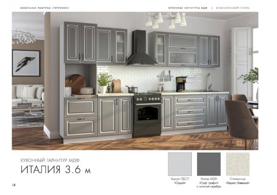 Модульный кухонный гарнитур Италия софт графит с патиной серебро (Террикон) - за 83 298 руб. в Дмитрове. Купите на сайте dmitrov.onlinemarketmebeli.ru или по телефону 8(800)505-30-63 уже сегодня! Уточнить наличие, комплектацию, актуальную цену можно бесплатно у менеджера ежедневно. Закажите Модульный кухонный гарнитур Италия софт графит с патиной серебро (Террикон) до конца акции! Доступна покупка в кредит, рассрочку. Доставим со склада или на заказ.