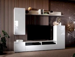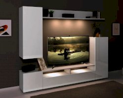 Стенка Лия выполнена в современном европейском стиле. Её дизайн совмещает в себе современные тренды: белый глянец, скругленные фасады МДФ, отсутствие лицевой фурнитуры. Белый цвет отлично сочетается со всей цветовой палитрой, что позволяет создавать яркий интерьер и компоновать с другой мебелью. Стенка включает в себя нишу под ТВ с открытыми и закрытыми полками для размещения приставок, медиа устройств, книг и элементов декора. Дополнительно гостиная комплектуется точечной подсветкой.